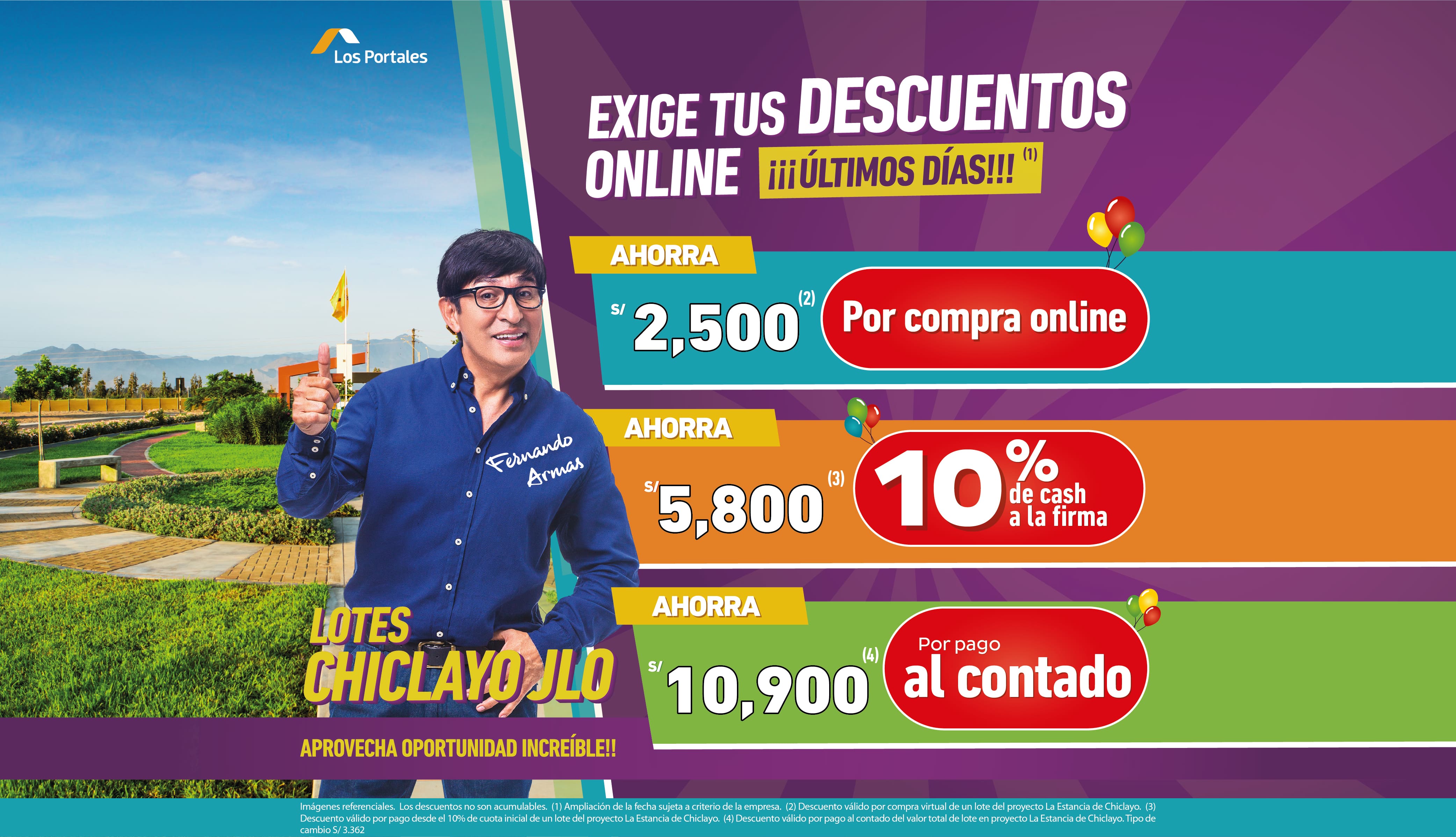 Imágenes referenciales sujetas a variación. (1) Precio por pago al contado para lotes de 90 m2 pertenecientes al proyecto "La Estancia de Chiclayo-IV Etapa". (2) Cuota mensual estimada para crédito directo abonando el 50% del precio del inmueble como cuota inicial y el saldo hasta en 84 meses para pagar. Válida para lotes de 90 m2 cuyo precio contado ascienda a US$13,198 ó S/47,513 pertenecientes al proyecto "La Estancia de Chiclayo-IV Etapa". TCEA 23%. Stock disponible 03 unidades. Tipo de cambio aplicable S/3.60