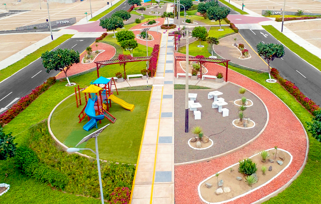 Es una urbanización para construir tu casa propia en el tiempo que necesites. Nuestro proyecto tiene fácil acceso a la Panamericana y cuenta con todos los servicios completos, luz, agua y desagüe, además de tu título de propiedad.